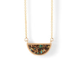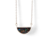 A small galaxy, suspended: the Matrix Boulder Opal One Half Necklace. A nebulous matrix boulder opal sourced from Australia is inlaid within a half circle design. Suspended by a chain of gold or silver, the design fuses natural motifs with geometric forms. Versatile and lightweight, the One Half Necklace was designed for layering and everyday wear.