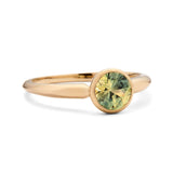 This Australian Sapphire engagement ring is a modern take on the best-selling Leigh Ring. Lou features a bezel set bicolor sapphire nestled between angular details flowing into a knife edge band. Pair with the Mazy Band or the Floe Diamond Ring to create a complimentary set.
