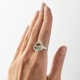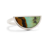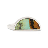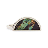 This Blackjack Turquoise ring showcases a design that could only come from nature’s creation. Ribbons of blue, green, and orange run through the black matrix, coming together to form a unique variety of Nevada turquoise encased in recycled silver or gold. Destined for stacking, mixing, and matching, pair the One Half Ring with our Rainbow Ring to bring your design full circle.