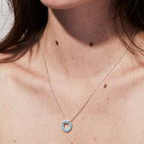 True to our design ethos, this number 8 turquoise geometric pendant honors nature’s creations. At center stage, a spider web matrix creates intricate patterns throughout vivid nevada turquoise. Designed to be worn solo or as an additional charm on your favorite necklace.