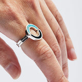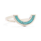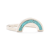 A unique, spider-web matrix distinguishes the Number 8 Turquoise Rainbow Ring. Set within an arc of recycled silver or gold, the upcycled stone’s intricate design is one-of-a-kind, and no longer mined, making it all the more precious. Destined for stacking, mixing, and matching, pair the One Half Ring with our Rainbow Ring to bring your design full circle.