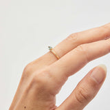 We acquired this Montana sapphire from an estate sale. It has been repolished and repurposed in our best-selling Florence setting. Utilizing stones currently in the supply chain is one of the most sustainable ways to create jewelry.